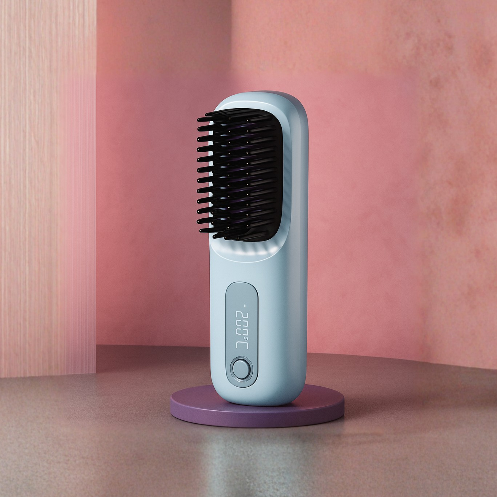 Experience smooth, frizz-free hair anywhere with our LED Electric Cordless Hair Straightening Brush. Designed for effortless styling on the go, this compact hot comb releases 20 million negative ions to moisturize, protect, and add shine to your hair with every pass.